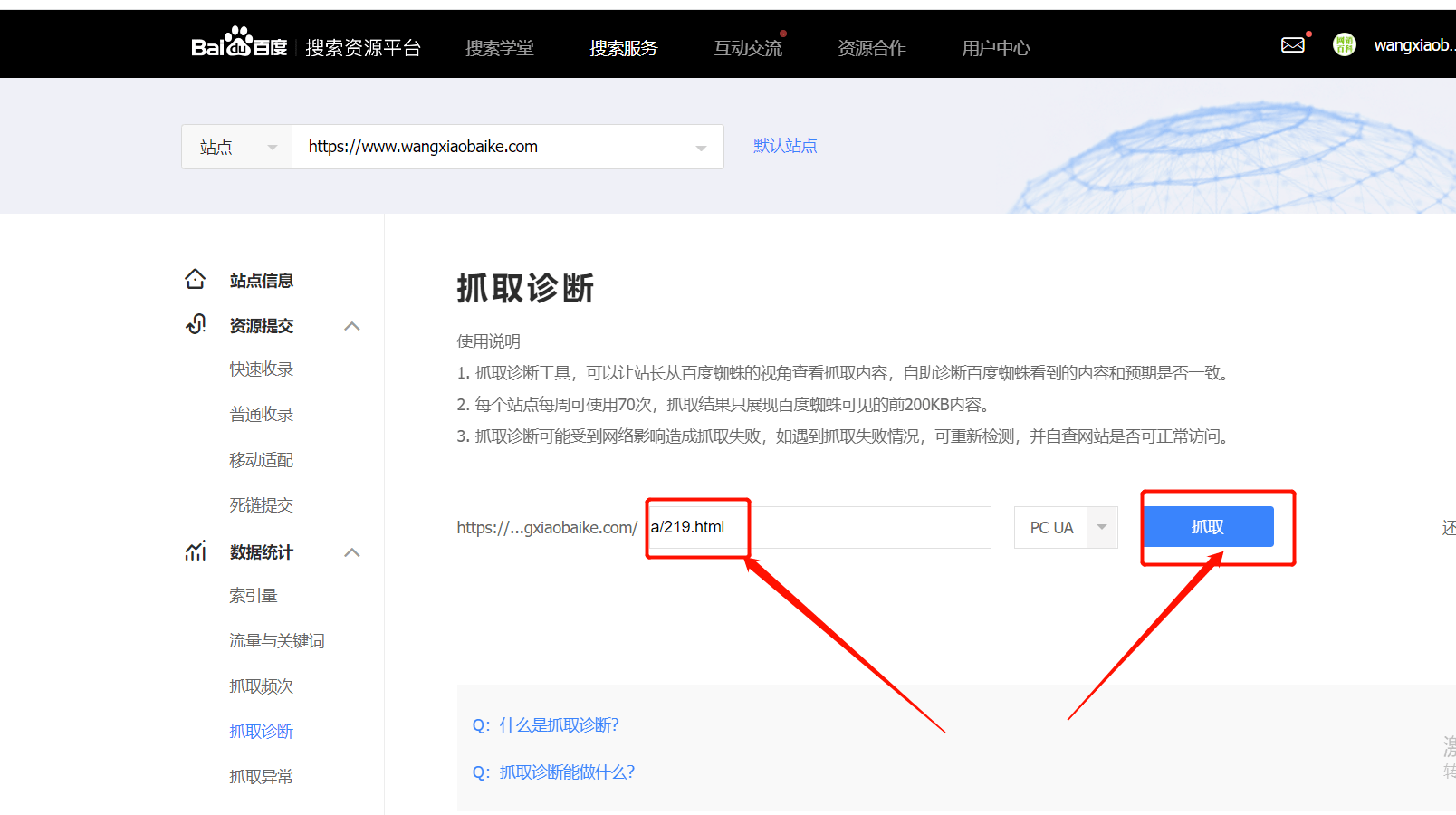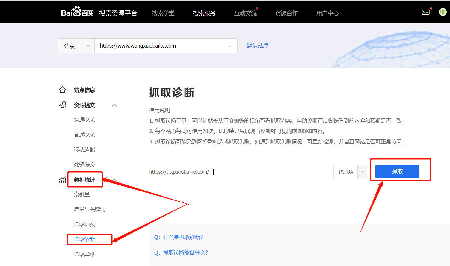 百度抓取診斷工具使用方法: