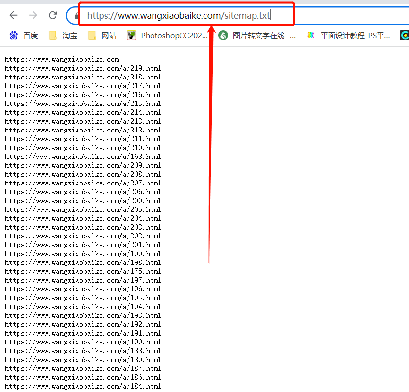 網(wǎng)站生成的網(wǎng)站地圖,就是網(wǎng)址+/sitemap.txt (如下圖),這個網(wǎng)址,打開就有網(wǎng)站的所有頁面的鏈接,也就是網(wǎng)站的sitemap。